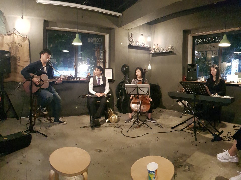 공연은 지나가는 불특정 다수의 주민을 위한 버스킹이 아닌, 목적을 갖고 찾아가는 음악회의 성격으로 기획했다. 나름 차년도까지 지속할 수 있도록 지역예술생태계의 기반을 다지자는 취지였다. 우선 주민들이 많이 찾는 동네 까페를 찾아다녔다. 공연이 가능할 것 같은 장소를 소개 받아 의사를 여쭸고, 몇몇 까페에서 관심을 보여 공연을 계획했다. 당시 코로나 이전이었기에 어린이집에서도 관심을 보였고, 주민자치센터나 지역의 작은 대학교 공연장에서도 공연의 기회를 마련 할 수 있었다. 10곳을 선정하고 섭외하기 위해 20곳 이상을 연락하고 찾아다녔다. 그 과정에서 자연스럽게 지역예술에 관심이 있는 주민들을 만나 이야기를 나눌 기회가 생겼다. 대체로 강동구 내에 문화 행사는 차고 넘치지만, 예술 작품이나 공연을 감상 할 기회는 거의 없다는 이야기였다. 대표적인 예로, 홍대 라이브 클럽에서 주 3회 연주를 하는 강동구의 한 재즈 피아니스트는 밤 늦은 시간 다른 동네에서 연주를 하고, 3만원도 안되는 연주비를 받아 할증료를 내고 택시로 귀가하는 일상을 보내고 있었다. 그렇게라도 무대를 지키지 않으면 예술가로 설 자리가 없기 때문이었다. ‘꼭 홍대여야 하는가’라는 질문에는 ‘홍대가 아니면 어디란 말인가’라는 대답이 돌아왔다. 그 이후로 지역예술생태계에 대한 본질적인 고민이 시작된 것 같다.